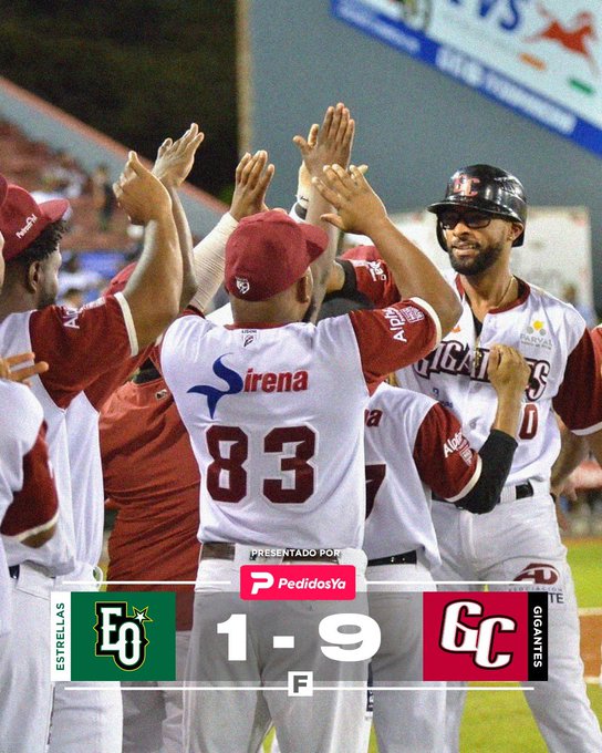 SAN FRANCISCO DE MACORÍS. – Luego de una caliente serie regular en la que bateó .340 con 3 jonrones en 63 turnos, el cubano Henry Urrutia está que arde en la parte inicial de la fase semifinal.   La noche del miércoles el inicialista de bate zurdo conectó par de cuadrangulares y remolcó cinco carreras para encabezar el tercer éxito de los Gigantes del Cibao en igual número de salidas, un aplastante triunfo 9-1 sobre las Estrellas Orientales que bajaron a 1-2.