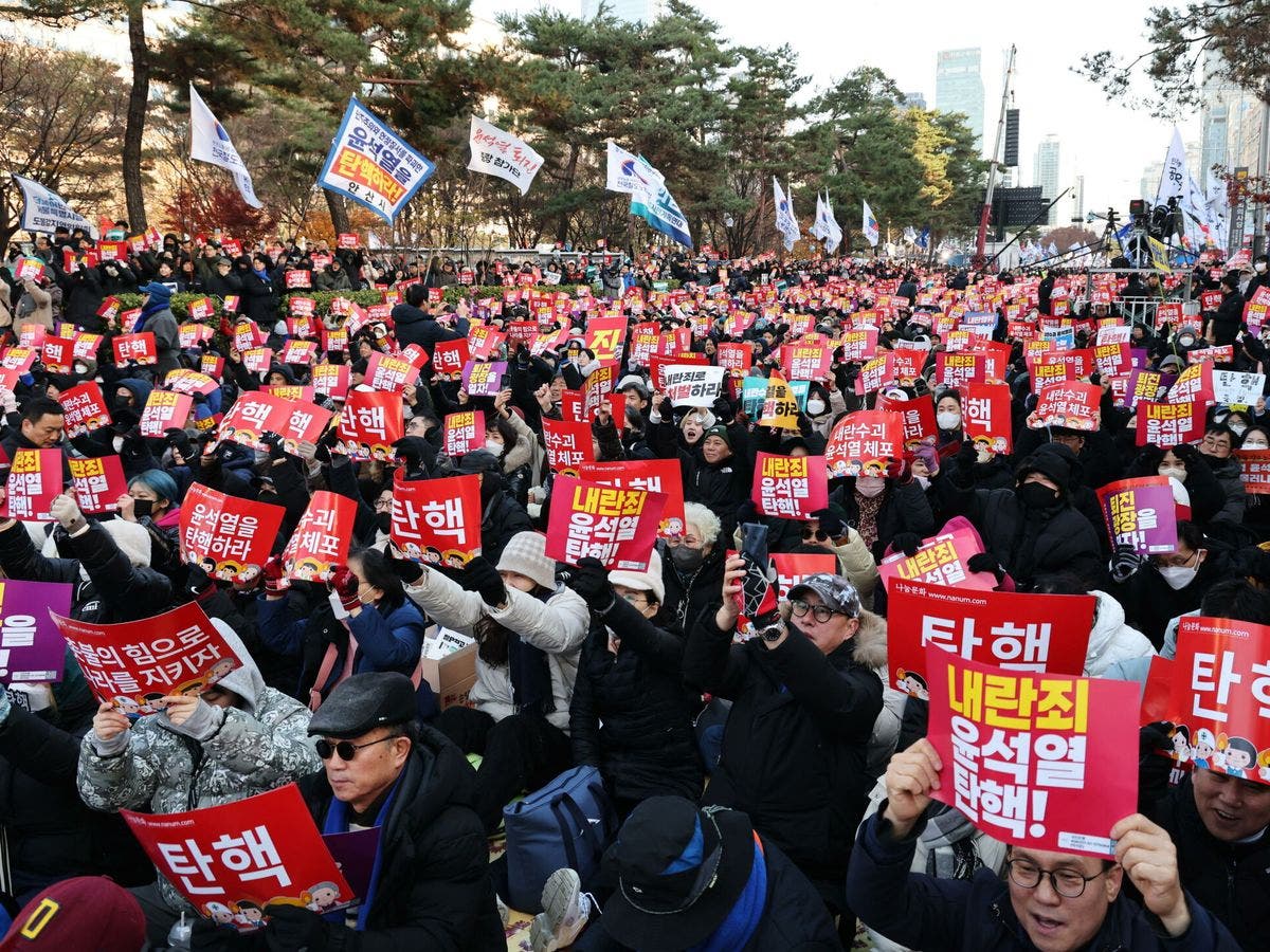 Seúl Una manifestación multitudinaria contra el presidente surcoreano, Yoon Suk-yeol, arrancó este sábado frente a la Asamblea Nacional de Corea del Sur, en Seúl, antes de la sesión que tendrá lugar en esta cámara para aprobar o no la destitución del mandatario por la aplicación de la ley marcial y de lo que salió liberado.