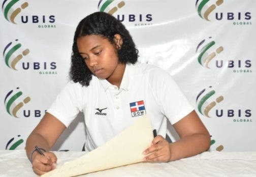 La juvenil voleibolista, Mía Liberato, acomodadora y capitana de las selecciones sub-19 y sub-21 de la República Dominicana, estampó ayer su firma con University of Business and Sustainability “UBIS”, de Suiza; donde llevará a cabo la carrera universitaria de Administración de Empresas.