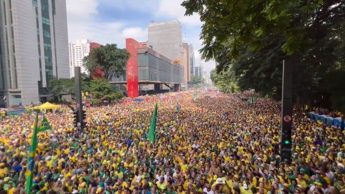 Una multitud se congregó este domingo en San Pablo convocada por el ex presidente Jair Bolsonaro, que busca en el acto rechazar las sospechas golpistas en su contra y dar una demostración de fuerza como líder de la oposición.