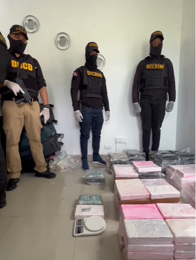 En un operativo conjunto en el Residencial Amalia, Santo Domingo Este, la Policía Nacional y la Dirección Nacional de Control de Drogas, con la presencia de fiscales, incautaron 204 paquetes de polvo blanco presuntamente cocaína.
