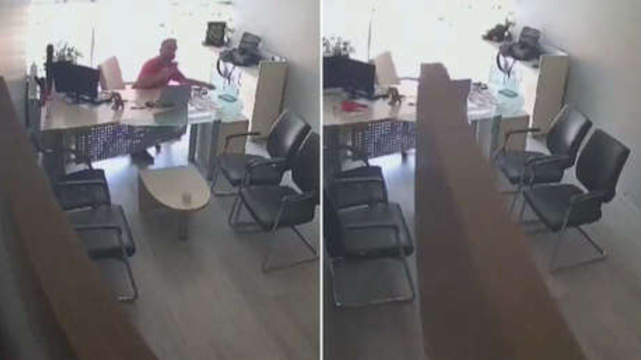 En otro video, captado por una cámara de vigilancia, se puede apreciar que tres hombres notan el sismo y abandonan un edificio.
